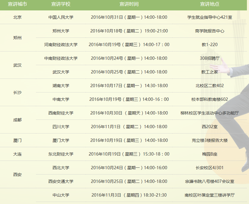 (二)非廣州高校畢業(yè)生如錯(cuò)過當(dāng)?shù)氐男@宣講會(huì),須到廣州參加筆試面試,請(qǐng)留意宣講會(huì)行程。