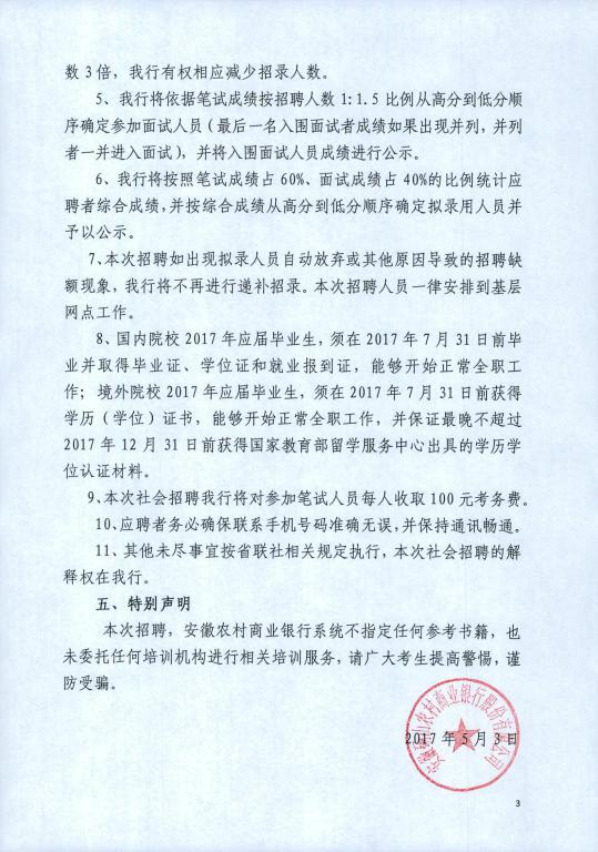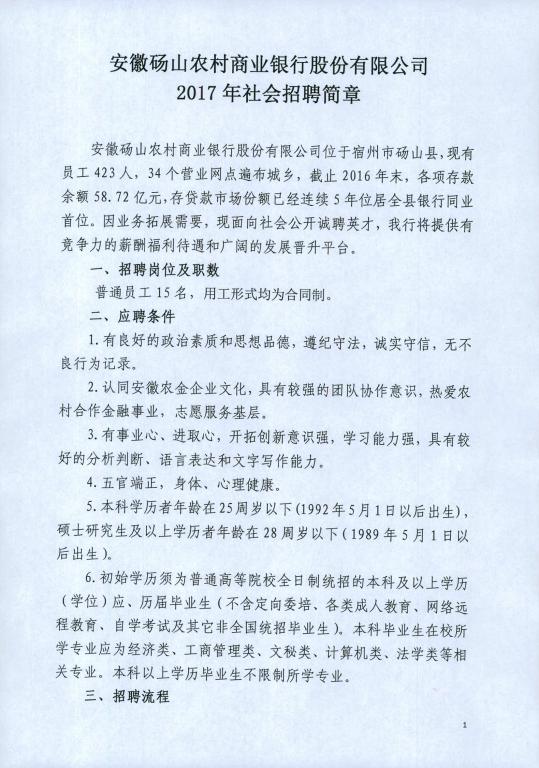 [安徽]2017年碭山農商銀行社會招聘簡章