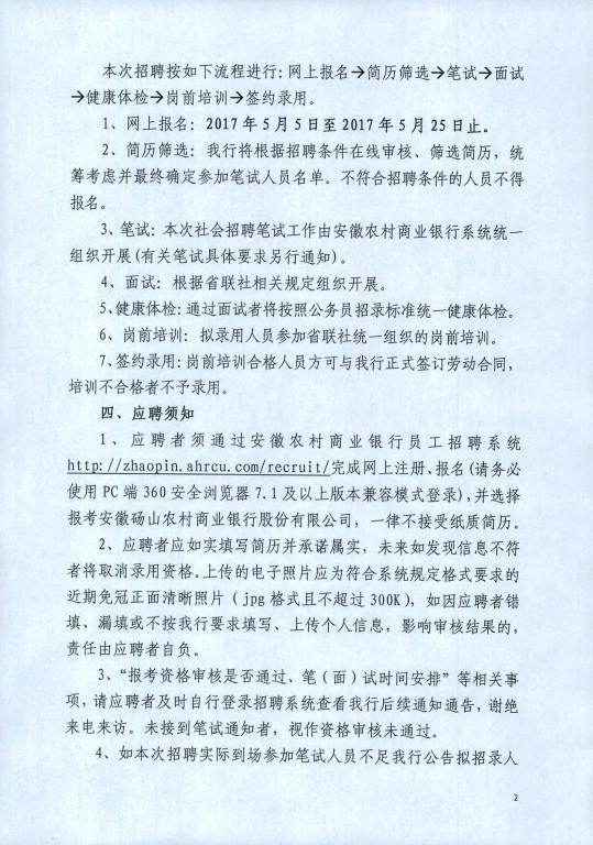 2017年碭山農商銀行社會招聘簡章已在銀行招聘網發布,報名時間截至2017年5月25日,詳情如下: