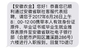 [安徽]2017年安徽省農村信用社聯合社招聘75人錄取通知