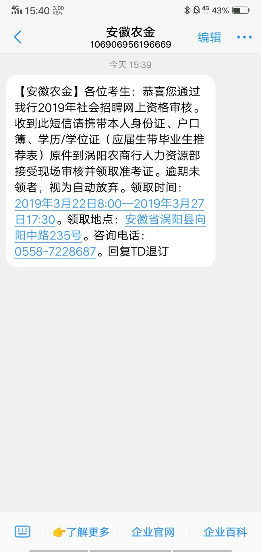 [安徽]2019年安徽渦陽農商行社會招聘現場領取準考證通知
