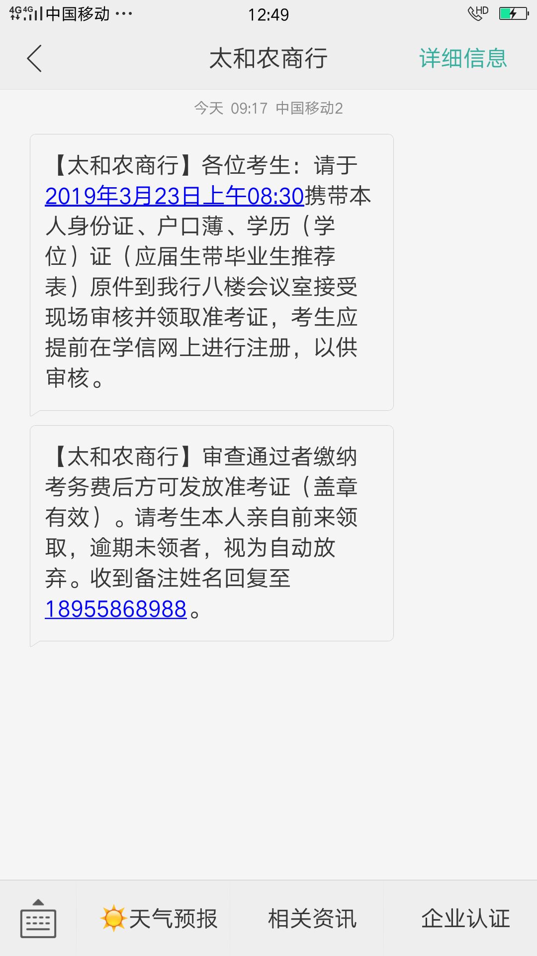 [安徽]2019年安徽太和農商行社會招聘現場領取準考證通知