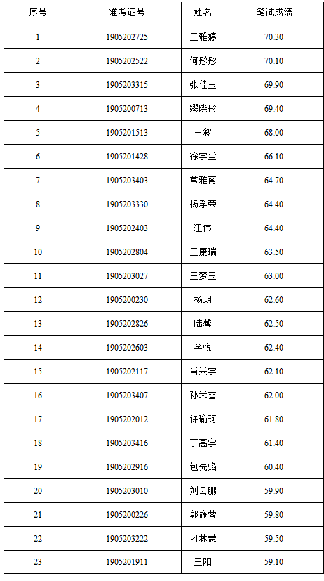 安徽農村商業銀行員工招聘系統自行查詢筆試成績,本行不再另行電話通知),2019年我行面向社會招聘普通員工面試入圍分數線為“59.10分”。現將相關事項通知如下: