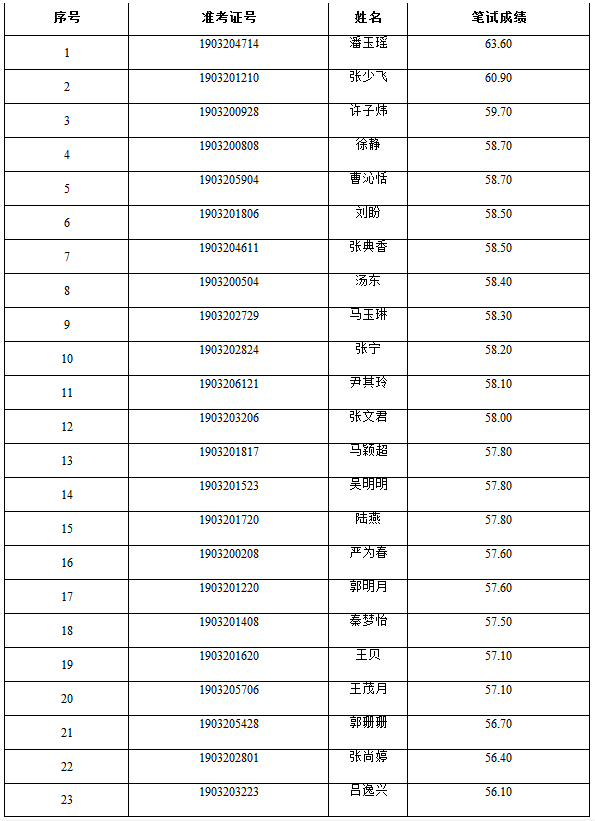 安徽農村商業銀行員工招聘系統自行查詢筆試成績,本行不再另行電話通知),2019年我行面向社會招聘普通員工面試入圍分數線為“56.1分”。現將相關事項通知如下: