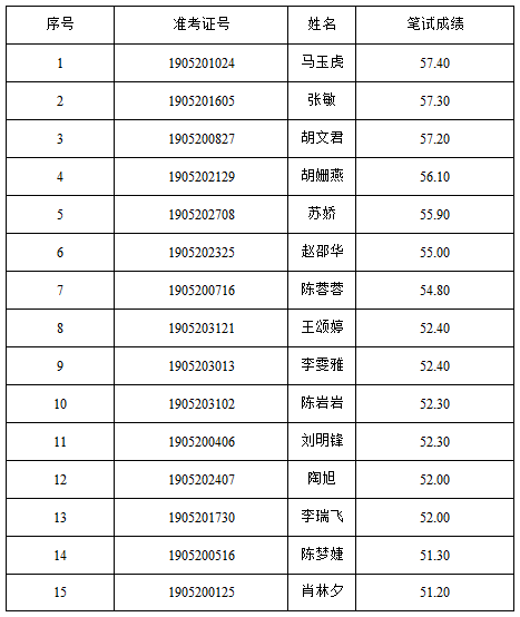 安徽農村商業銀行員工招聘系統自行查詢筆試成績,本行不再另行電話通知),按照1:1.5比例核定面試入圍人員名單,2019年我行面向社會招聘普通員工面試入圍分數線為“51.2分”。現將相關事項通知如下: