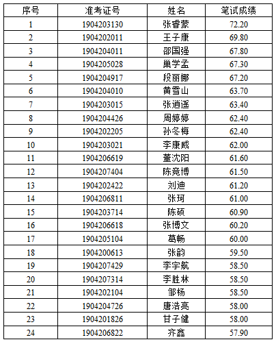 安徽農村商業銀行員工招聘系統自行查詢筆試成績,本行不再另行電話通知),2019年我行面向社會招聘普通員工面試入圍分數線為“57.9分”。現將相關事項通知如下: