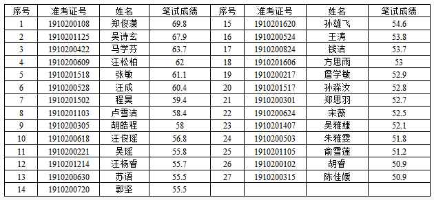 安徽農村商業銀行員工招聘系統自行查詢筆試成績,本行不再另行電話通知),2019年我行面向社會招聘普通員工面試入圍分數線為“50.9分”。現將相關事項通知如下: