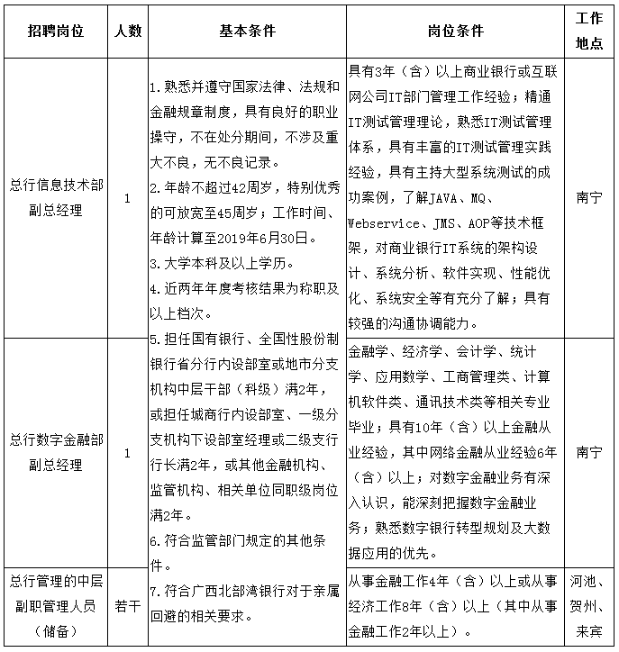 根據(jù)業(yè)務(wù)發(fā)展需要,現(xiàn)面向社會誠邀英才。應(yīng)聘人員一經(jīng)錄用,我行將與其簽訂勞動合同,并提供具有市場競爭力的薪酬福利待遇和多元化的職業(yè)發(fā)展平臺。