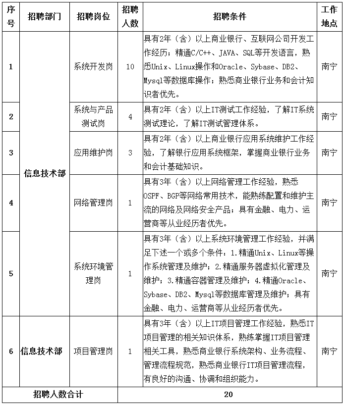 根據業務發展需要,現面向社會誠邀英才。應聘人員一經錄用,我行將與其簽訂勞動合同,并提供具有市場競爭力的薪酬福利待遇和多元化的職業發展平臺。
