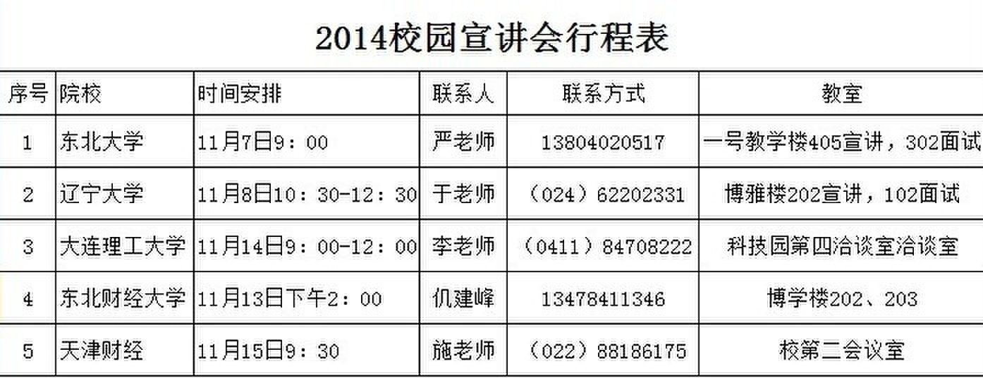 遼陽銀行2014校園招聘宣講會行程表