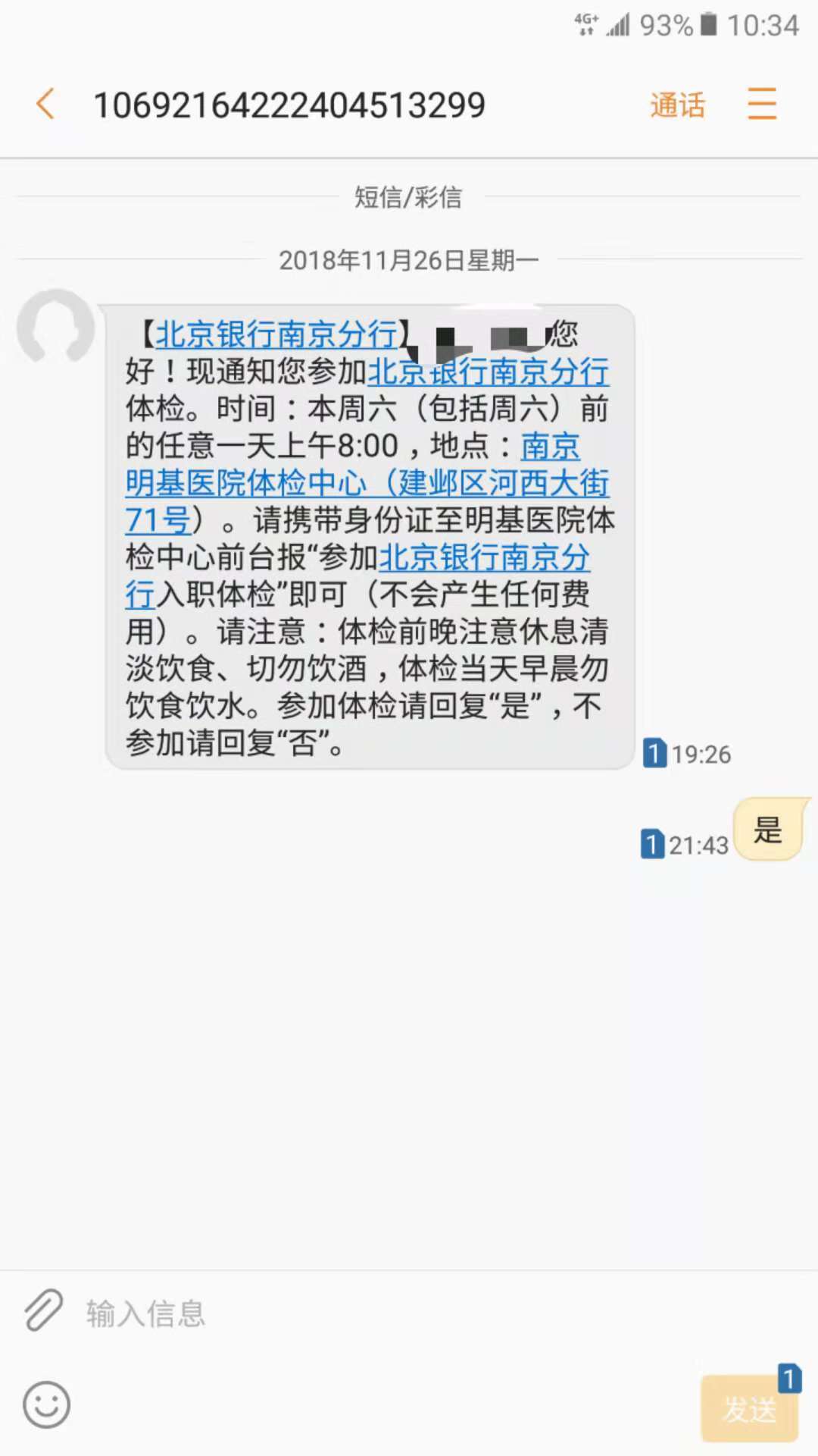 [江蘇]2019年北京銀行南京分行校園招聘體檢通知