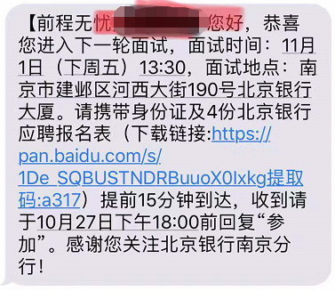 [江蘇]2020北京銀行南京分行校園招聘面試通知