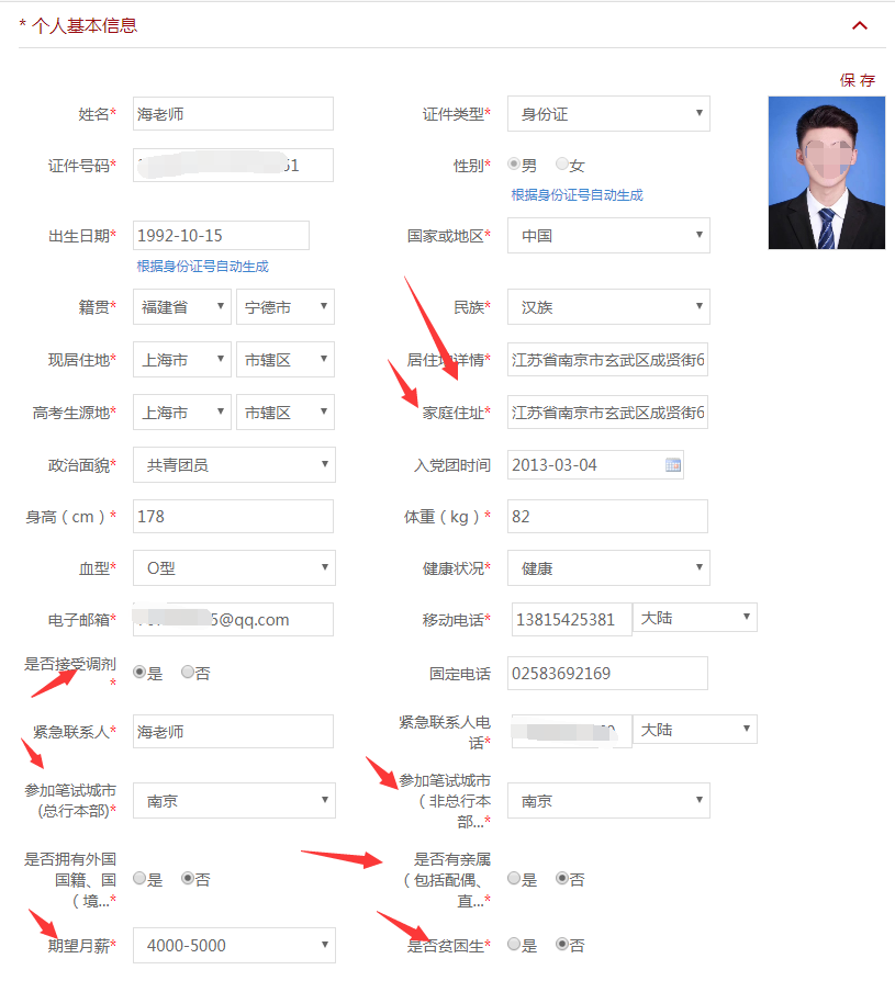 “現(xiàn)居住城市”:這個(gè)顧名思義,不過(guò)填寫(xiě)時(shí)候有一個(gè)技巧,那就是這個(gè)地址是你所報(bào)崗位所在區(qū)域的地址,為啥呀填崗位所在地,因?yàn)橄鄬?duì)穩(wěn)定以及具有當(dāng)?shù)刭Y源,這是銀行方所喜歡的。
