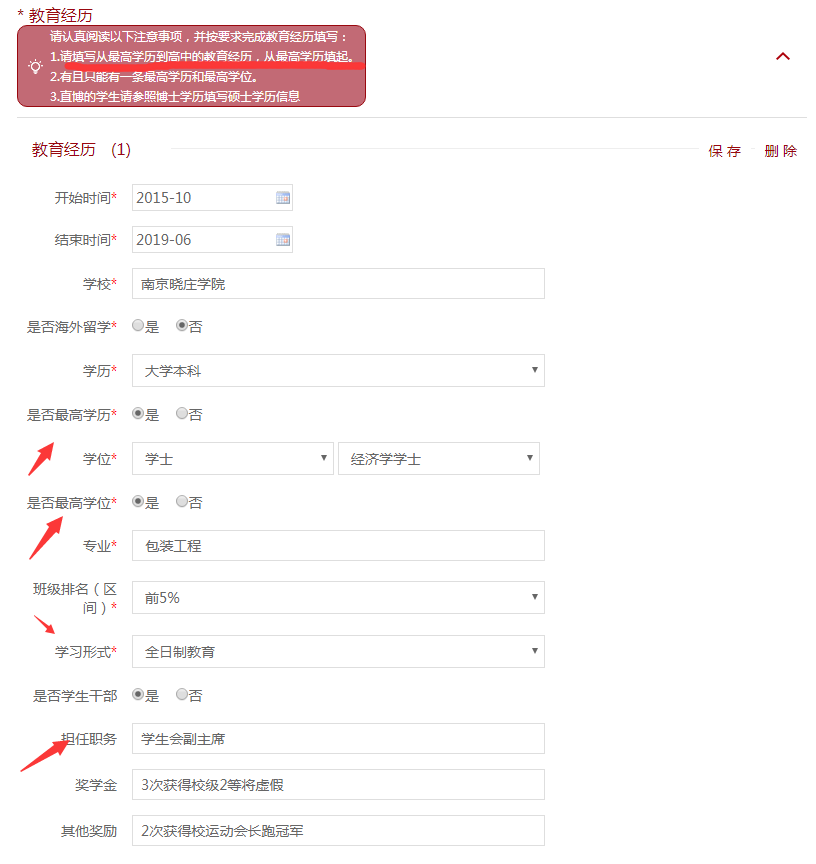 有且只能有一條最高學(xué)歷和最高學(xué)位。