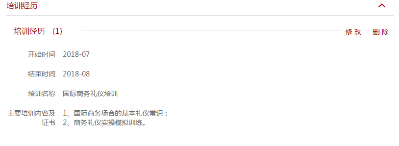 培訓(xùn)經(jīng)歷一般會(huì)有字?jǐn)?shù)要求,一般都是100字以內(nèi)。所以這時(shí)候?qū)τ谂嘤?xùn)經(jīng)歷描述就要少而精了。培訓(xùn)經(jīng)歷中最關(guān)鍵部分莫過(guò)于培訓(xùn)內(nèi)容,但這里也不是真正要問(wèn)有何培訓(xùn)內(nèi)容,而是想問(wèn)的是經(jīng)過(guò)培訓(xùn)掌握的技能。例如銀行崗前培訓(xùn),這里的培訓(xùn)內(nèi)容就應(yīng)該是商務(wù)禮儀、快速點(diǎn)鈔、柜臺(tái)操作......然后加上掌握程度即可。
