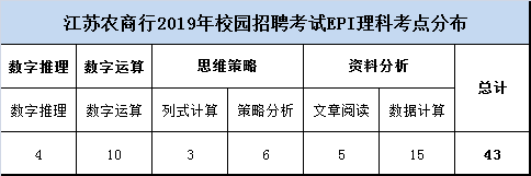 江蘇農商行筆試EPI考試模塊為:言語理解、數字運算、邏輯推理、思維策略和資料分析。