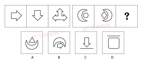 【東吳教育解析】第一組圖形均含有箭頭,且均是軸對稱圖形,第二組圖形均含有月亮,且都是軸對稱圖形,按照這個規律,答案選A。
