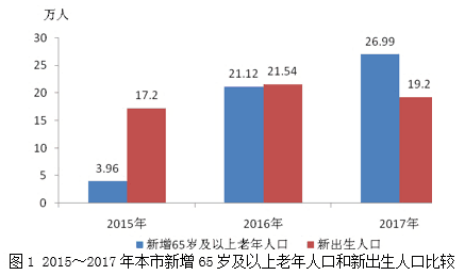 (2019年交通銀行)2017年上海60歲及以上常住人口達到( )萬人,65歲及以上常住人口達到345.78萬人,分別比上年增加37.6萬人和26.99萬人。65歲及以上老年人口增量自2010年第六次人口普查以來首次高于新出生人口(見圖1)。