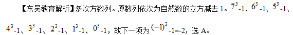 【東吳教育解析】等差數(shù)列。原數(shù)列兩兩作差依次為1、3、9、27,是公比為3的等比數(shù)列,下一項(xiàng)做差為81,故原數(shù)列為81+43=124,選A。