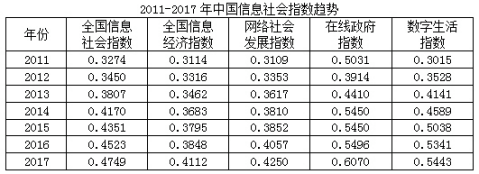 【東吳教育解析】根據表格中的數據,2011-2017年間,中國各領域信息社會指數中出現起伏變化的是