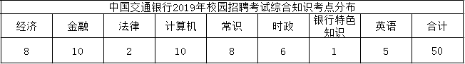 2)交通銀行特色知識(1題)----(關于交通銀行的相關介紹、銀行時政新聞及銀行業務知識;購買東吳教育聯合銀行招聘網出版的《全國銀行招聘考試指定教材(2019最新版)》的考生可以添加銀行招聘網公眾號考前獲取中國交通銀行特色知識補充資料。