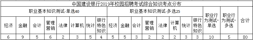 2)建設銀行特色知識(單選4題,多選3題)----(關于建設銀行的相關介紹、銀行時政新聞及銀行業務知識;購買東吳教育聯合銀行招聘網出版的《全國銀行招聘考試指定教材(2019最新版)》的考生可以添加銀行招聘網公眾號考前獲取中國建設銀行特色知識補充資料。