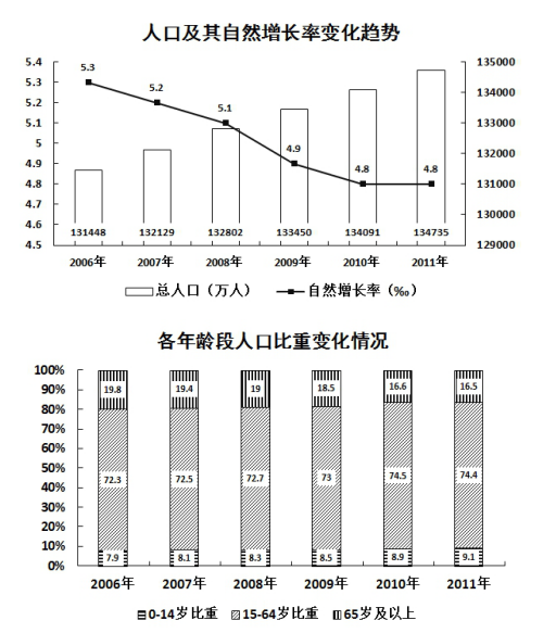 C.人口自然增長越來越少,相比2010年,2011年的人口增長幾乎停滯