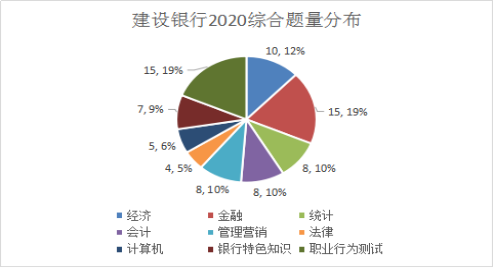 從知識點分布來看,建行主要考查職業行為測試、建設銀行特色知識、金融(金融學和商業銀行)、經濟學、計算機、管理營銷、會計、法律統計學等等。