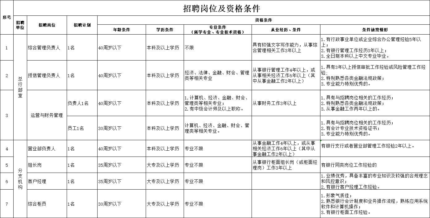 1.遵紀(jì)守法,誠實守信,熱愛農(nóng)村金融事業(yè),認(rèn)同湘農(nóng)村鎮(zhèn)銀行企業(yè)文化,無違法違紀(jì)行為及不良記錄。