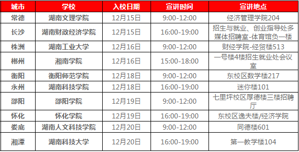 4、招聘項目組將在10所高校進行招聘宣講并進行簡歷接收和現場初面,具體安排如下: