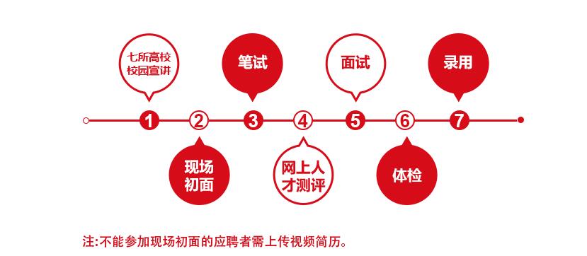 六、招聘流程:七所高校校園宣講現(xiàn)場初面筆試+網(wǎng)上人才測評面試體檢 錄取