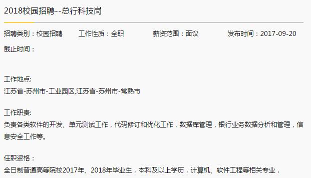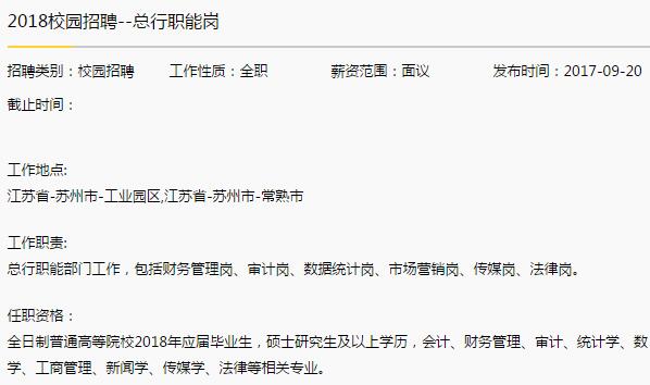 [江蘇]2018年常熟農商行總行校園招聘公告