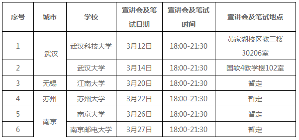 蘇州的任何一場校園宣講會及筆試,通過我行筆試后方可參加省聯社統一組織的筆試,具體以短信或郵件通知。宣講行程安排如下:
