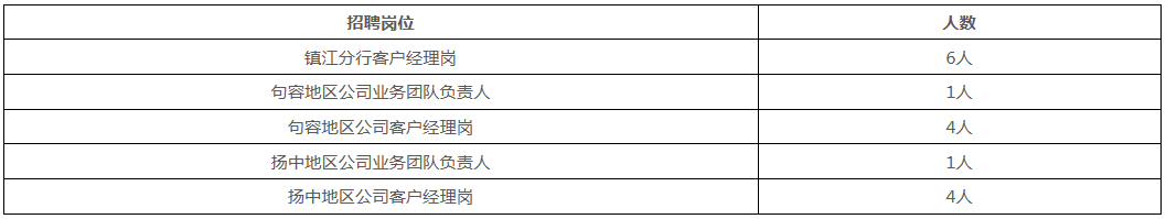 根據業務發展需要,現誠邀社會各界勇于接受挑戰、德才兼備的人才加盟,共同開拓常熟農商銀行鎮江分行美好未來。具體招聘事項如下: