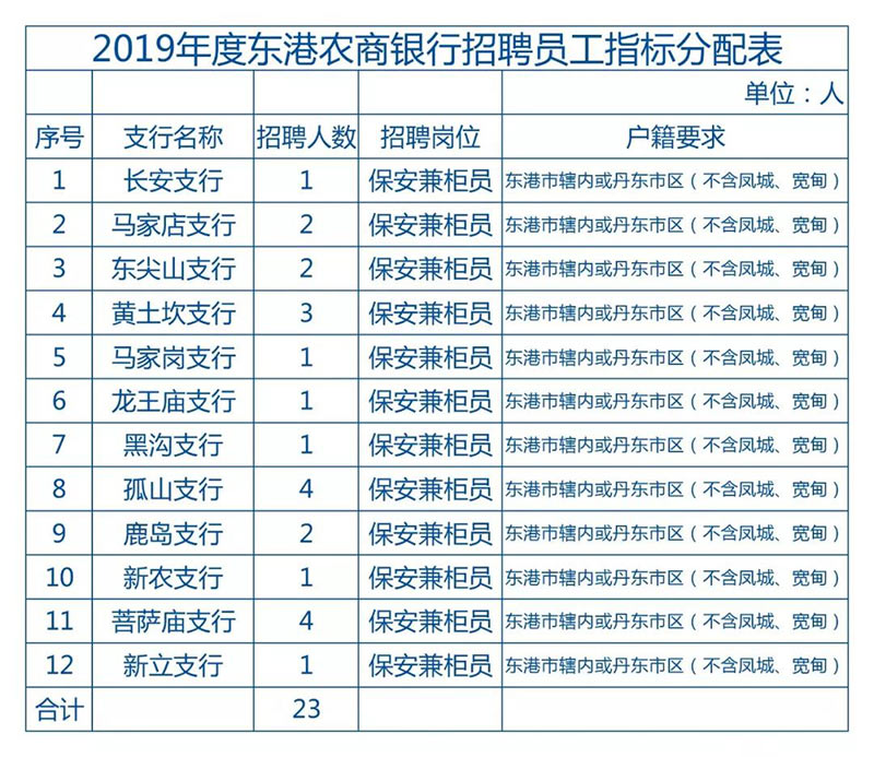 本次共招聘23人,分配到我行基層營業網點保安兼柜員崗位(詳見文章末尾圖表)。