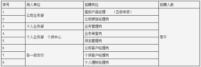 2、相關工作經驗:2年及以上銀行工作經驗,且與應聘崗位相關的工作經驗不低于1年;其中,公司業務部高級產品經理(五級專技)相關工作經驗不低于4年;