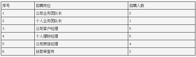 2、工作經驗:2年及以上銀行工作經驗,1年及以上信貸工作