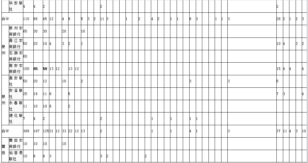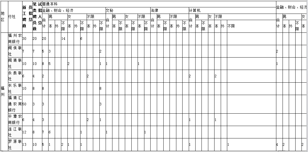 主頁 > 農(nóng)村信用社招聘 > 福建省農(nóng)村信用社招聘 > [福建]福建省農(nóng)村信用社系統(tǒng)2014年度新員工招聘分布表(筆試類)
