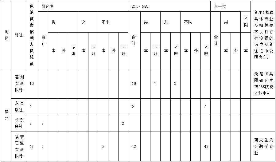 福建農村信用社2104校園招聘分布表(免筆試類)