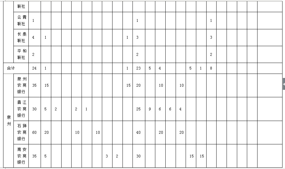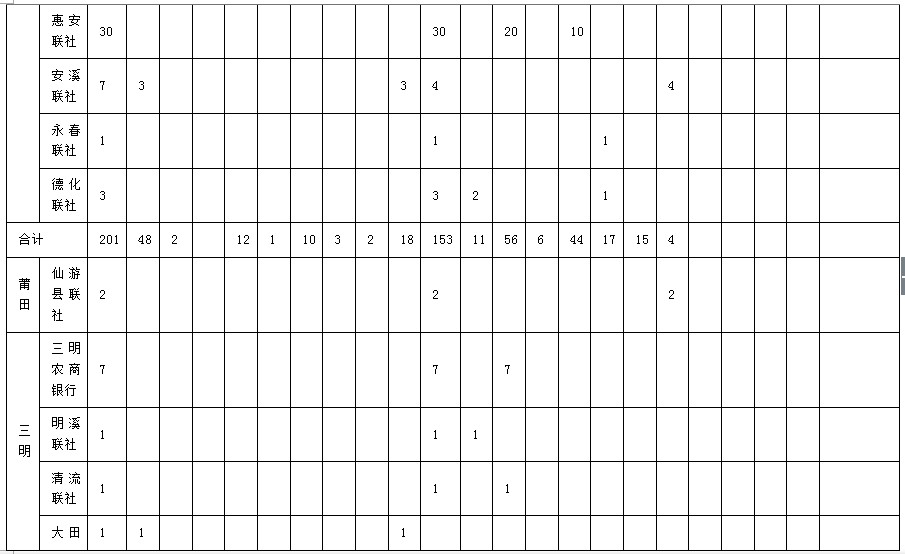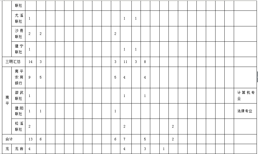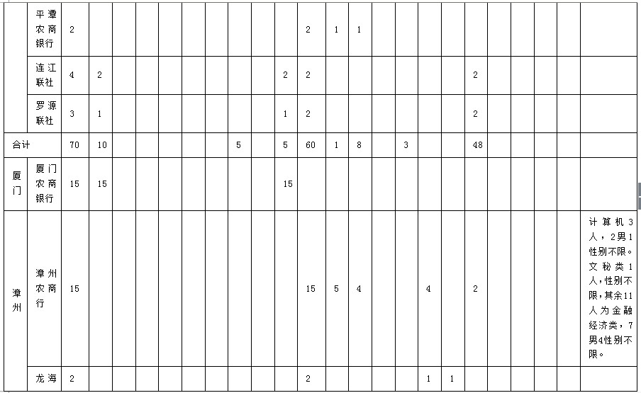 [福建]福建省農村信用社系統2014年度新員工招聘分布表(免筆試類)