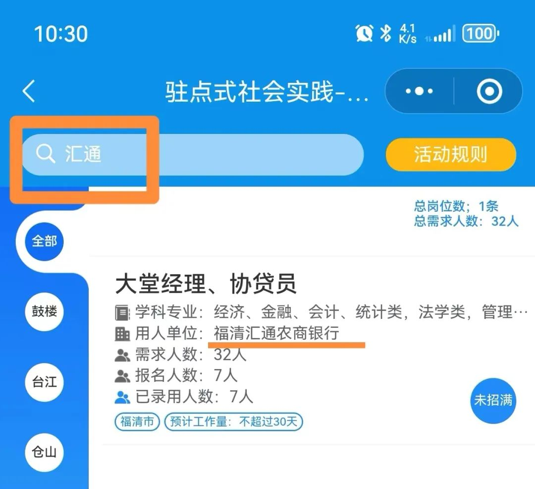 福州丨福清匯通農商銀行暑期實習報名開始啦!