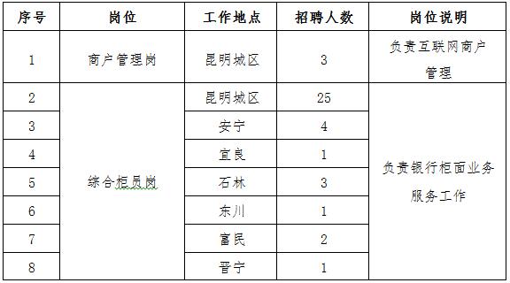 1.商戶管理崗年齡不超過27周歲,綜合柜員崗年齡不超過25周歲;