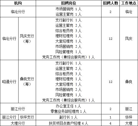 除具備以上基本條件外,各崗位具體條件詳見《富滇銀行部分州市分行2019年社會招聘具體崗位條件表》(附件)。
