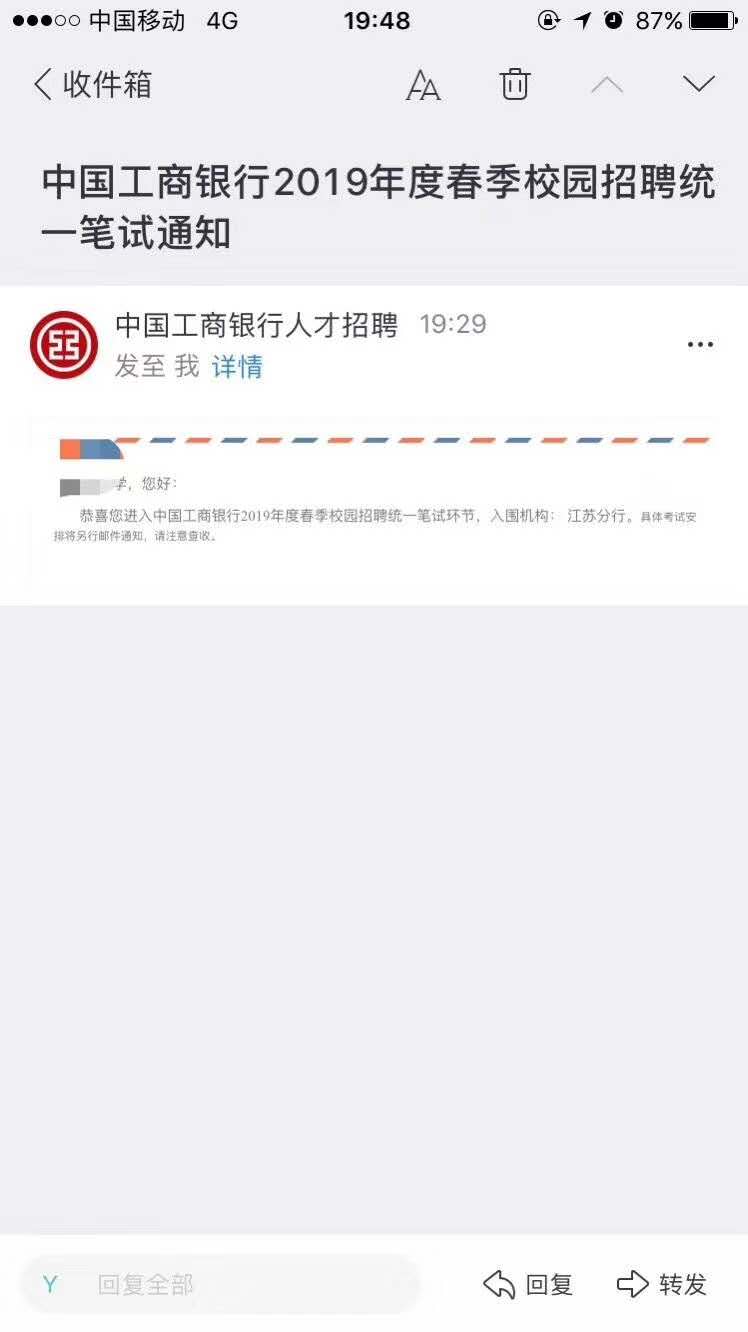 [江蘇]2019年中國工商銀行江蘇分行春季校園招聘統一筆試預通知