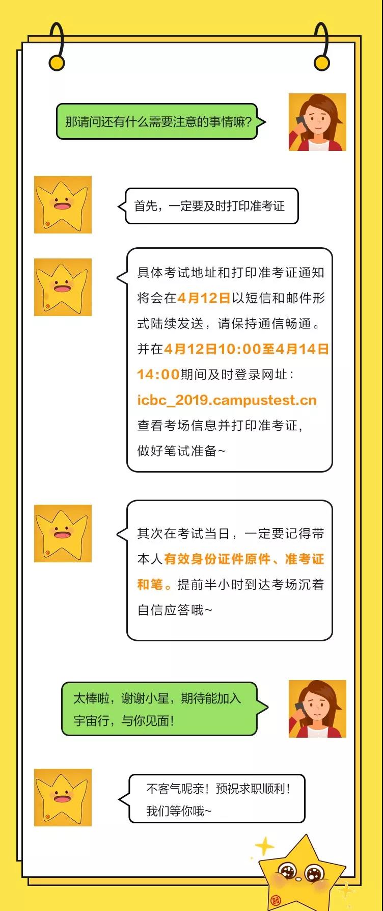 2019年中國工商銀行春季校園招聘筆試通知公告