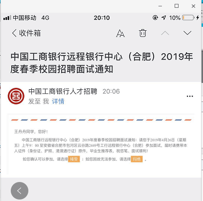 2019年中國工商銀行遠程銀行中心(合肥)春季校園招聘面試通知
