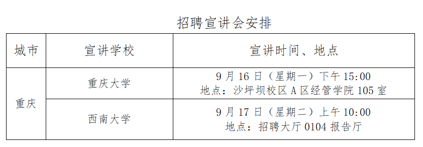 我行將在重慶大學、西南大學等高校舉辦2020年度校園招聘宣講會,歡迎廣大青年才俊踴躍參加。