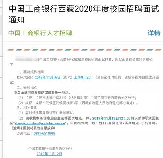 2020中國工商銀行西藏分行校園招聘面試通知公告