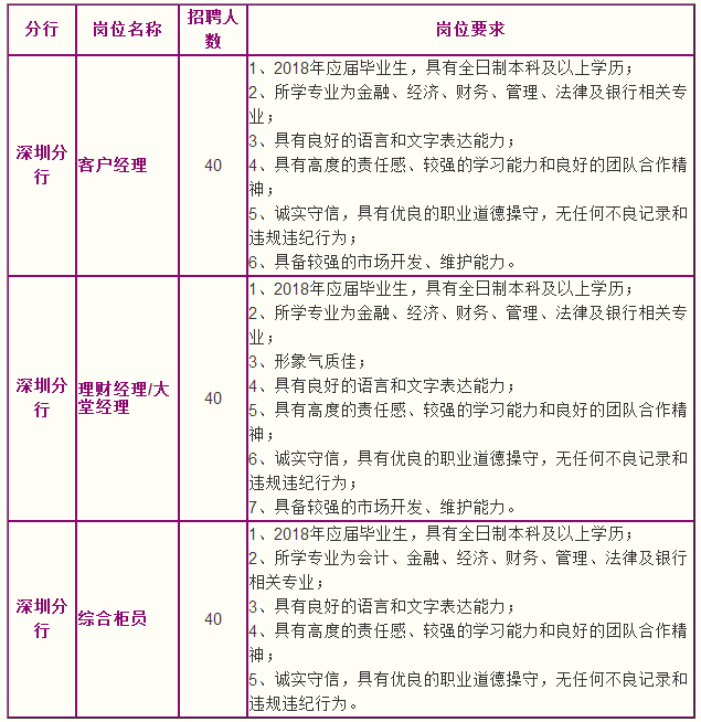 (1)簡歷投遞:請通過中國光大銀行總行官方網站(www.cebbank.com)—人才招聘—校園招聘—深圳分行校園招聘專區,根據應聘崗位按照要求投遞簡歷,截止時間2018年3月21日,請各位同學務必確保簡歷填寫的完整性,避免無效簡歷。