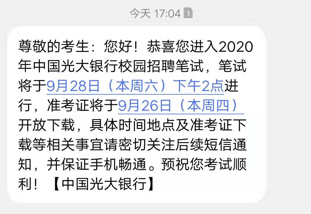 [安徽]2020年中國光大銀行合肥分行校招筆試通知